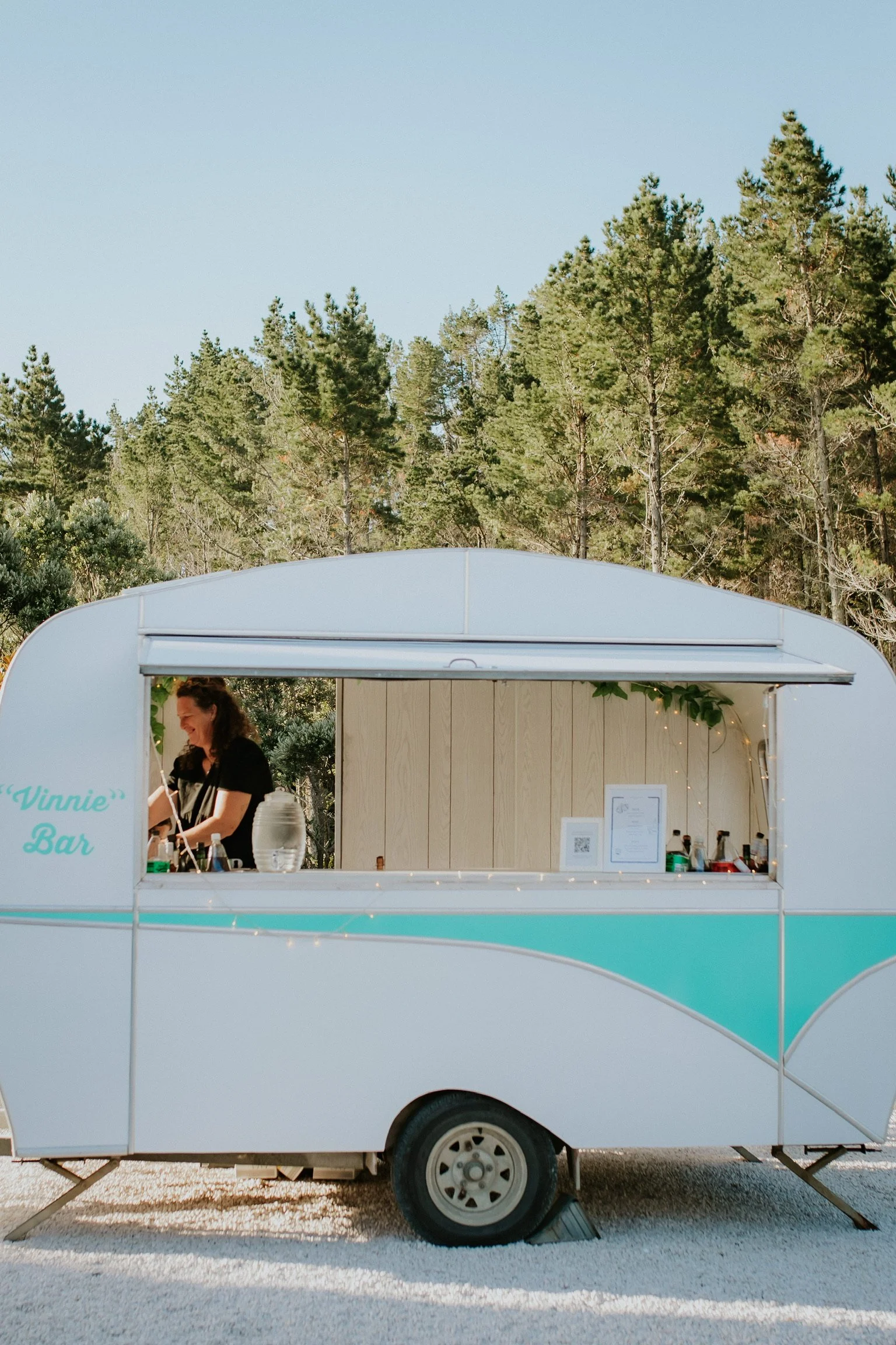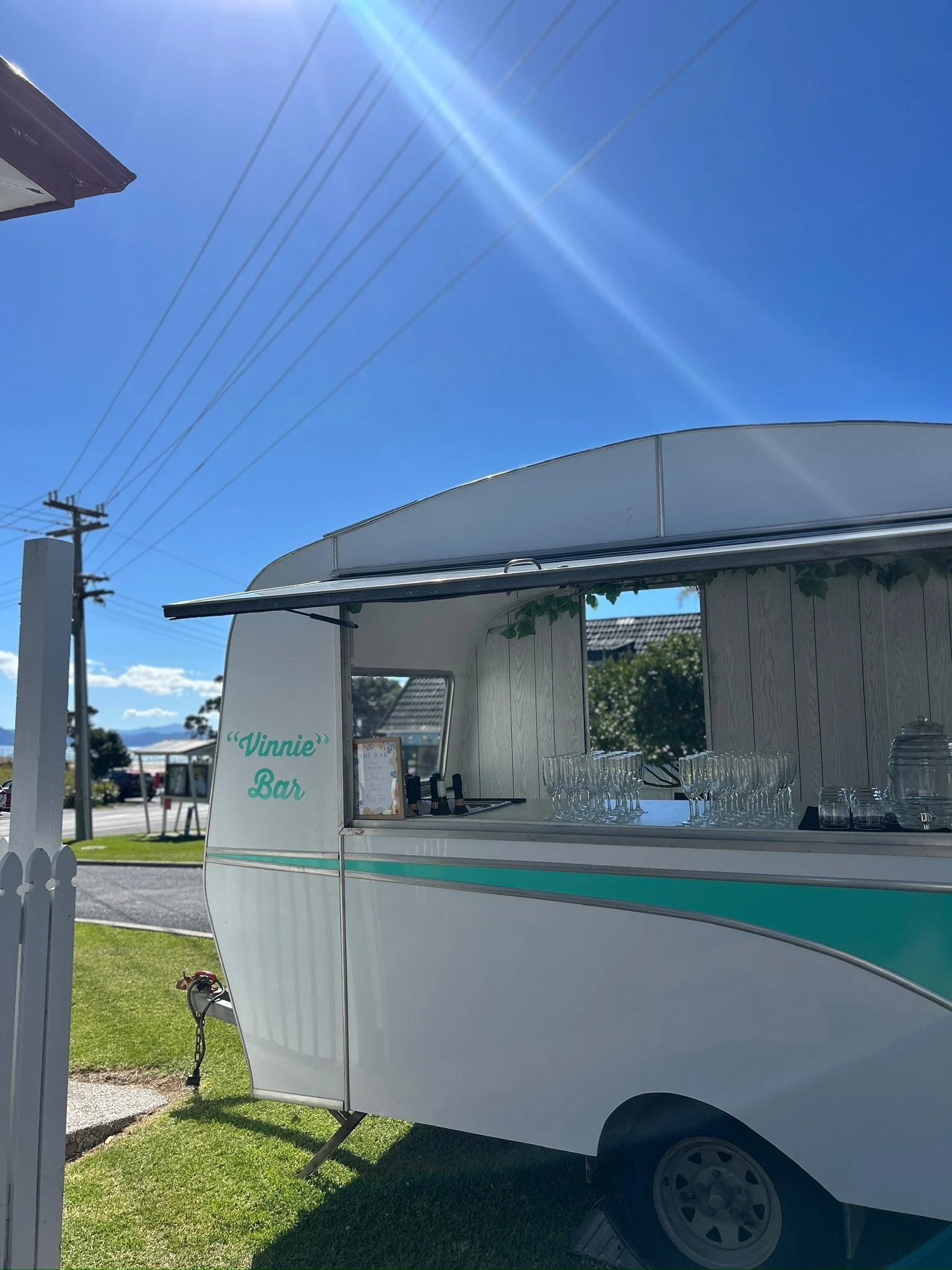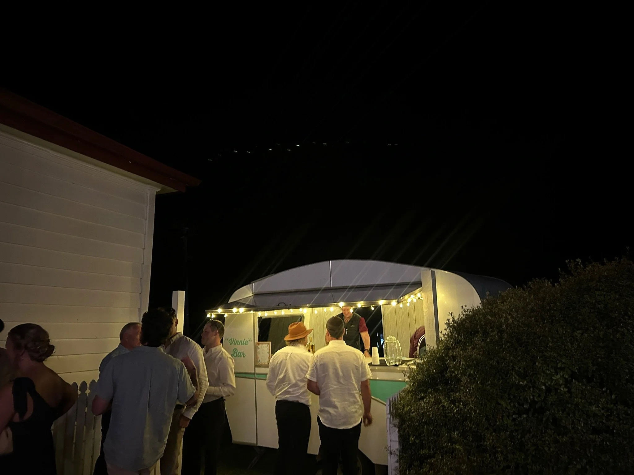 Photos of Vinnie the Vintage Caravan Bar in Action. Our caravan bar has travelled all over including destinations such as Hahei, Whangamata, Tairua, Whitianga, Kuoatunu, Waitete Bay and Thames in celebration of a variety of events. Events include weddings; charity events, birthdays, engagements and work do’s