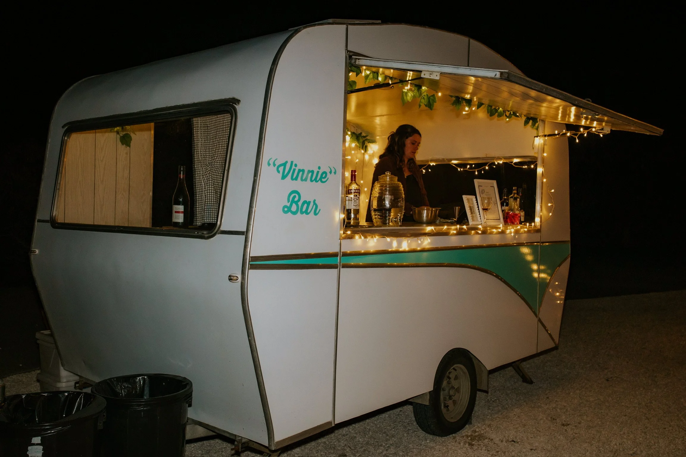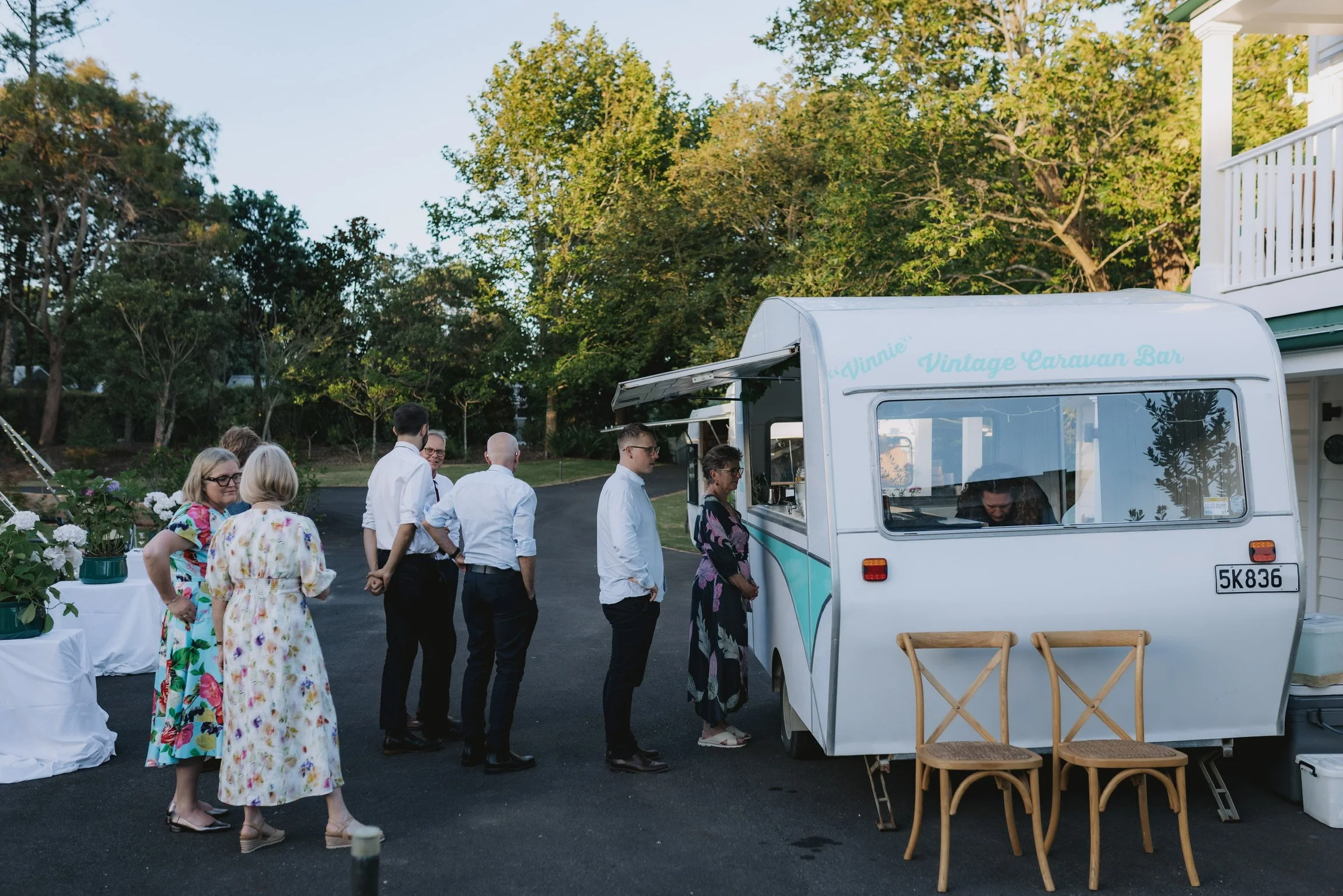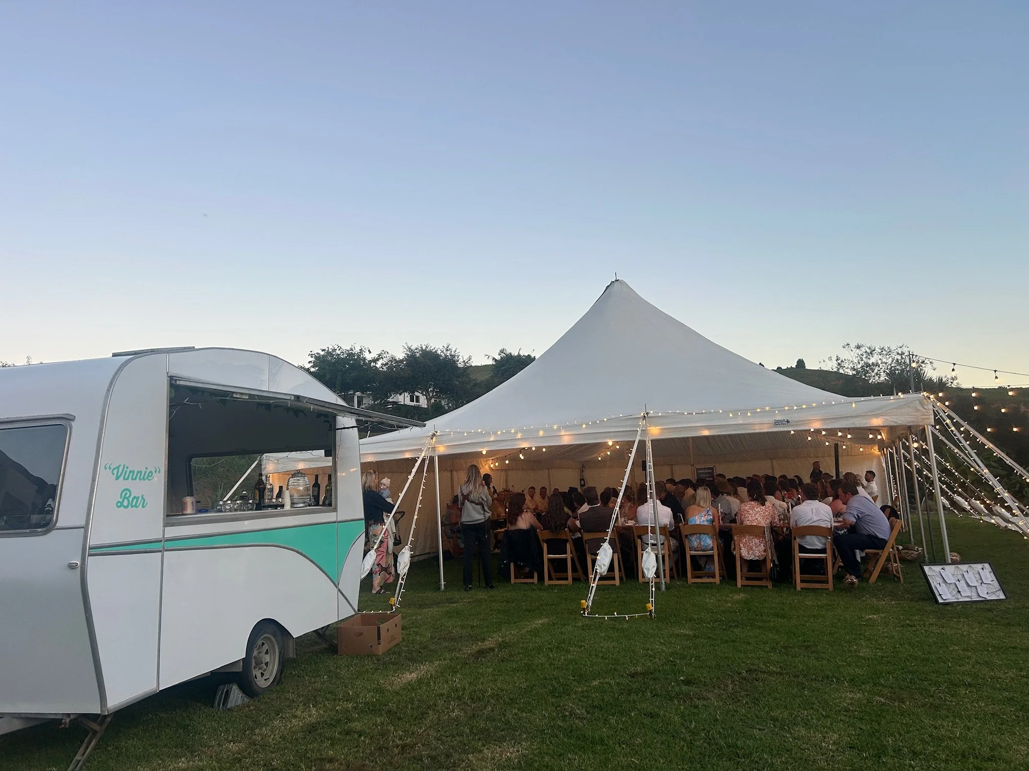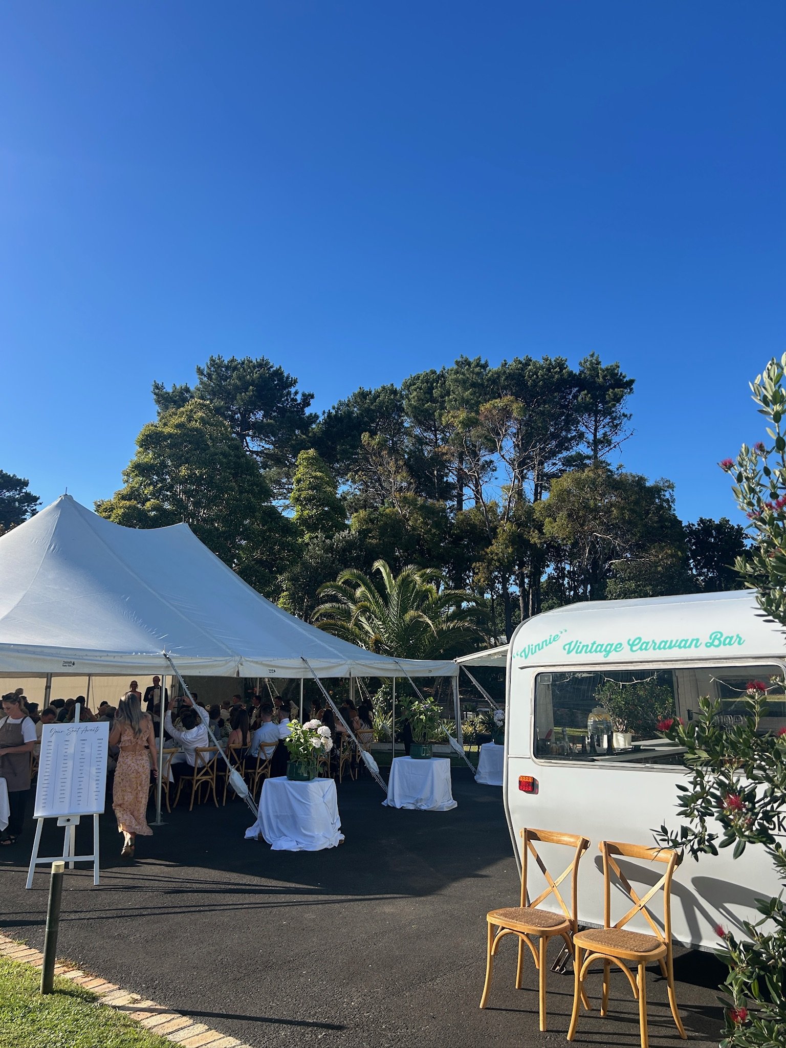 Photos of Vinnie the Vintage Caravan Bar in Action. Our caravan bar has travelled all over including destinations such as Hahei, Whangamata, Tairua, Whitianga, Kuoatunu, Waitete Bay and Thames in celebration of a variety of events. Events include weddings; charity events, birthdays, engagements and work do’s